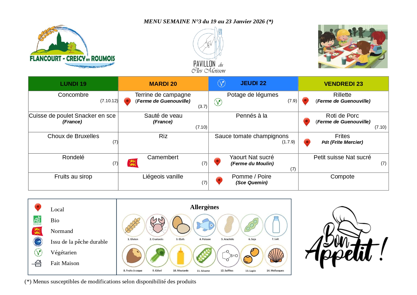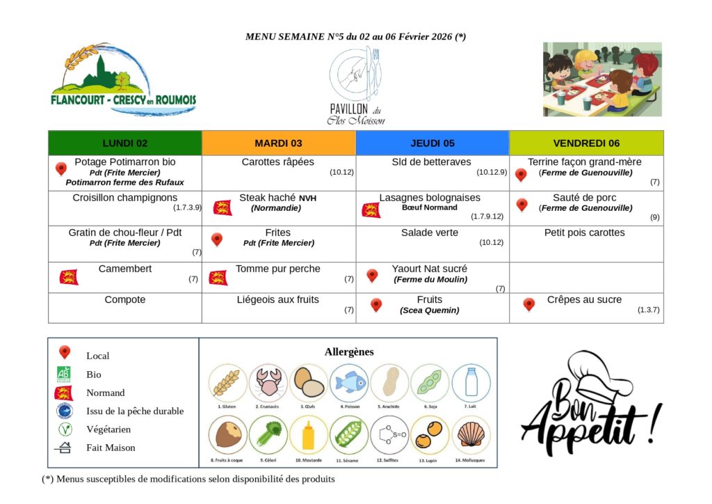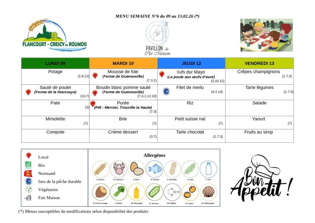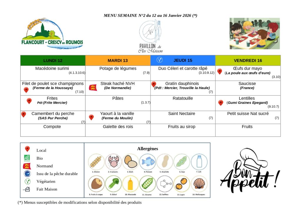 Menus de l’année scolaire 2025- 2026 :