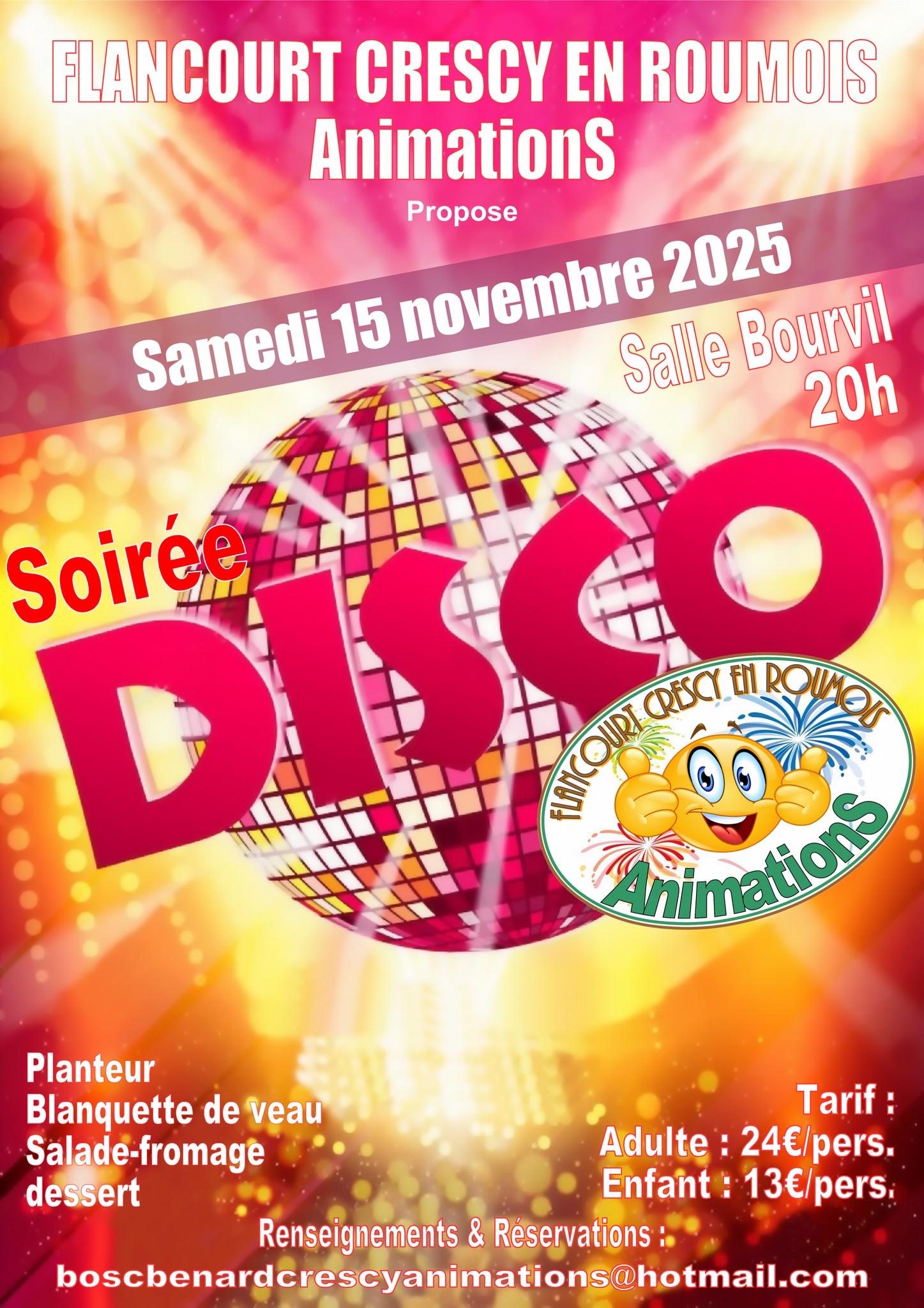 Flancourt-Crescy en Roumois AnimationS organise un repas dansant « Blanquette de Veau » le samedi 15 novembre à la Salle BOURVIL.